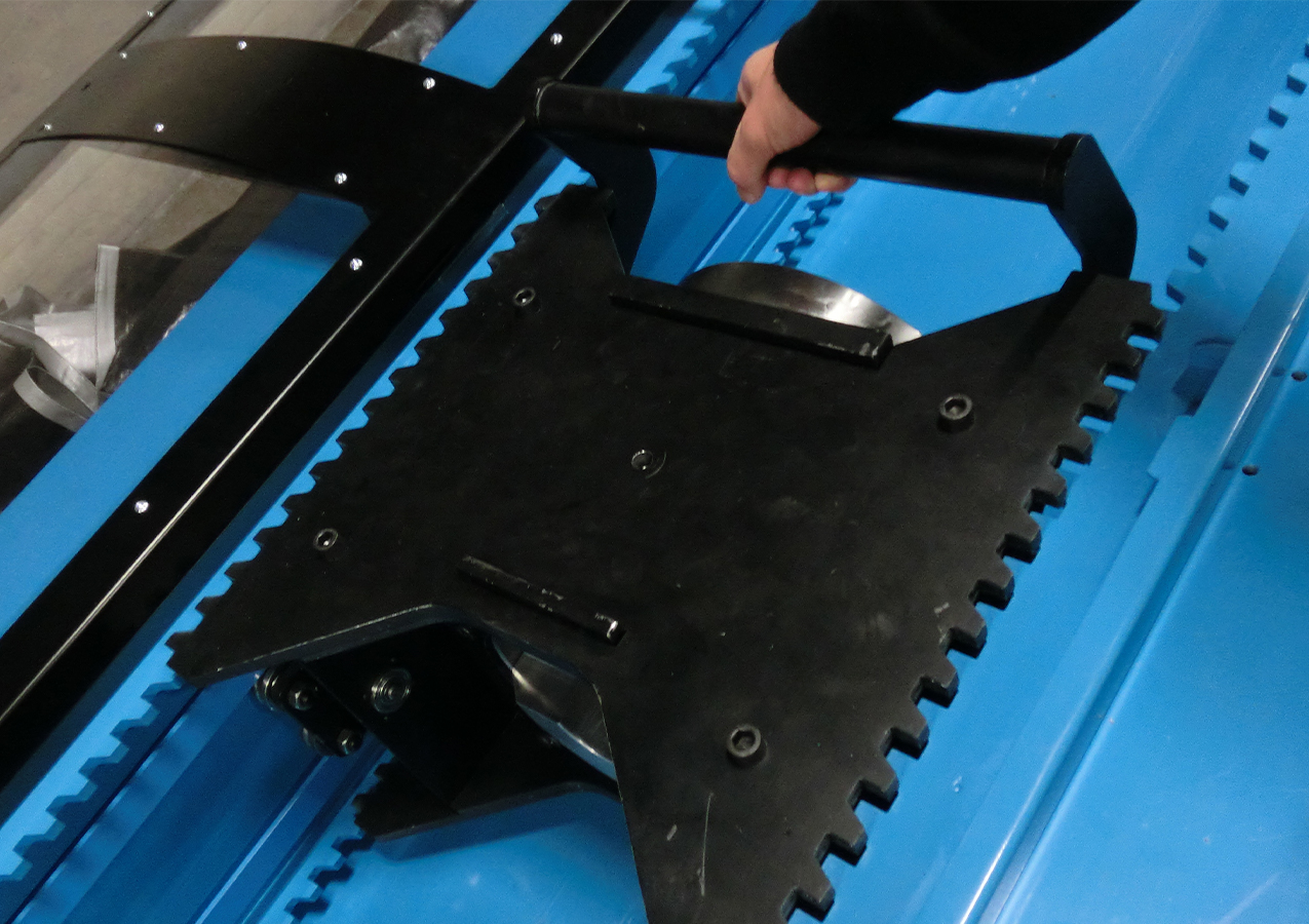 The design office engineers developed the test bench using a concept of identical modules assembled end-to-end, ensuring perfect rigidity of the bench as well as ease of assembly and shipment of the test machine to our customer. This concept also allows the length of the bench to be resized by adding or removing modules.