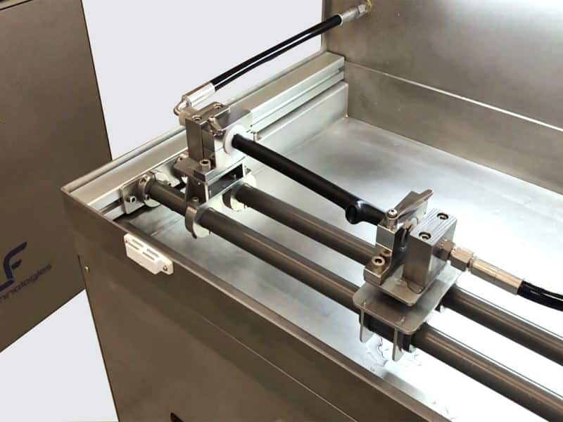 Carry out bursting tests on plastic or flexible tubes by subjecting them to internal pressure.